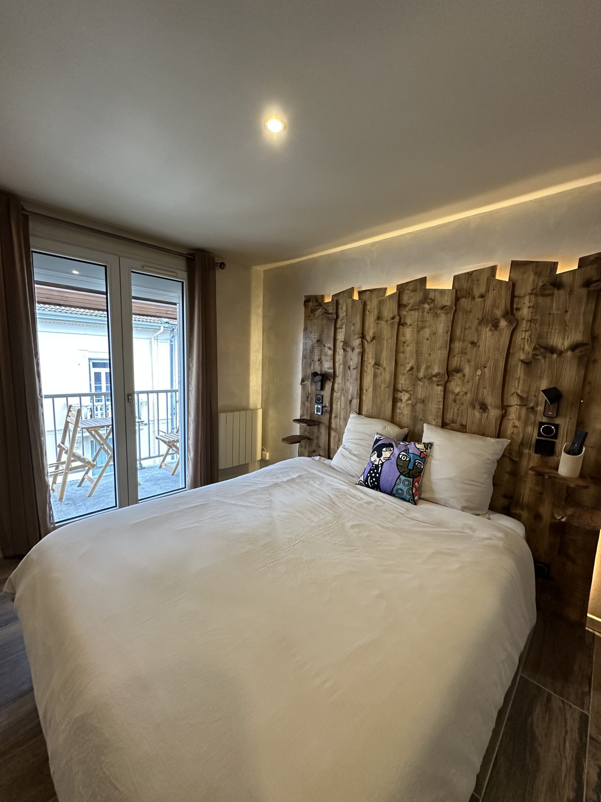 Une suite parentale tout confort L’espace nuit a été traité comme une véritable suite. La chambre, disposant également d’un accès au balcon, intègre un dressing sur-mesure et une salle d’eau moderne attenante. Celle-ci bénéficie d’une fenêtre (lumière naturelle), d’une douche à l’italienne spacieuse et d’un sèche-serviettes soufflant. WC séparés.